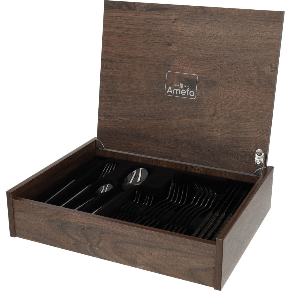 Avec l' ensemble de couverts Metropole 24 pièces - Noir d' Amefa, vous apportez fonctionnalité et apparence à votre table. Commandez maintenant et découvrez la perfection à chaque bouchée
