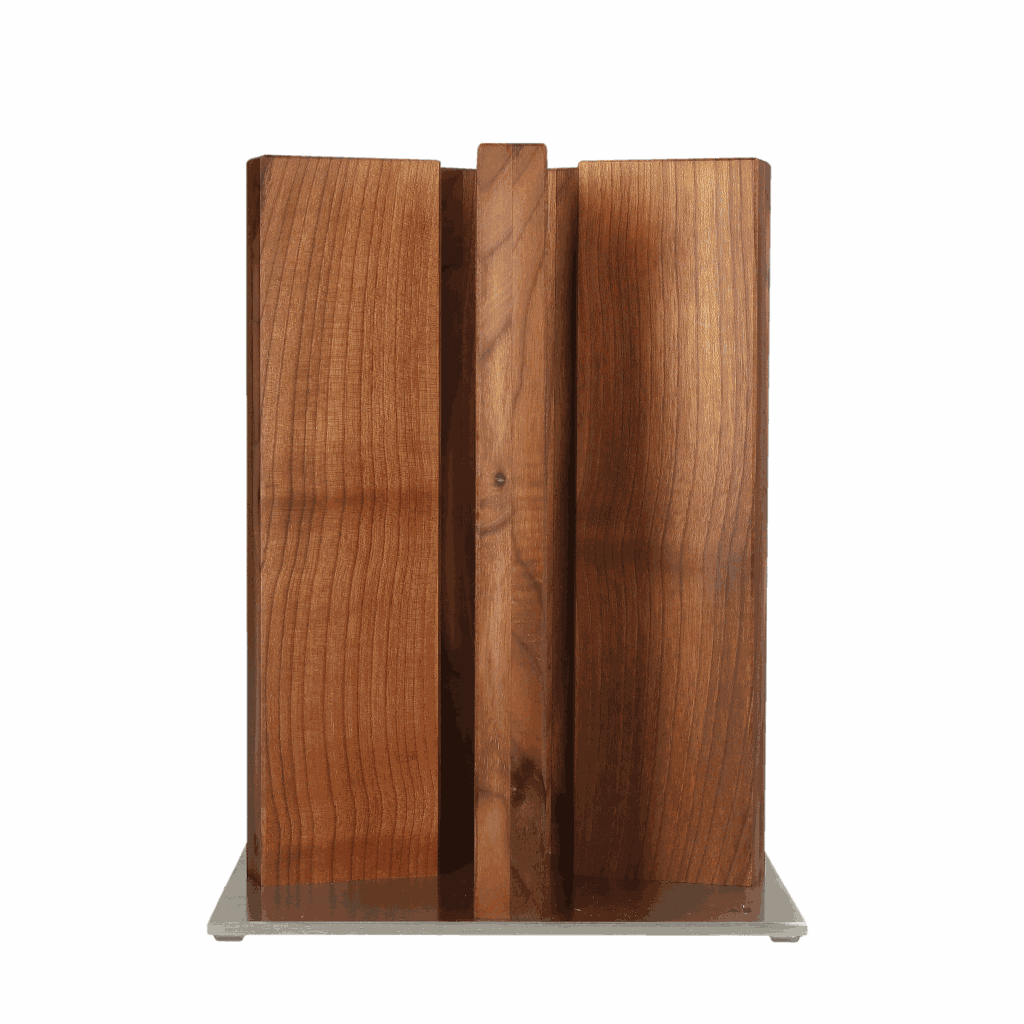 El bloque para cuchillos ''Stonehenge'' de acero inoxidable/nogal de Kai Shun no es sólo un bloque para cuchillos, sino que llamará la atención en su cocina. Este exclusivo bloque magnético para cuchillos, inspirado en el icónico monumento de Stonehenge, combina un diseño impresionante con funcionalidad. Con su base de acero inoxidable y cinco soportes de madera de nogal, este bloque para cuchillos ofrece una solución de almacenamiento segura y elegante para sus cuchillos.