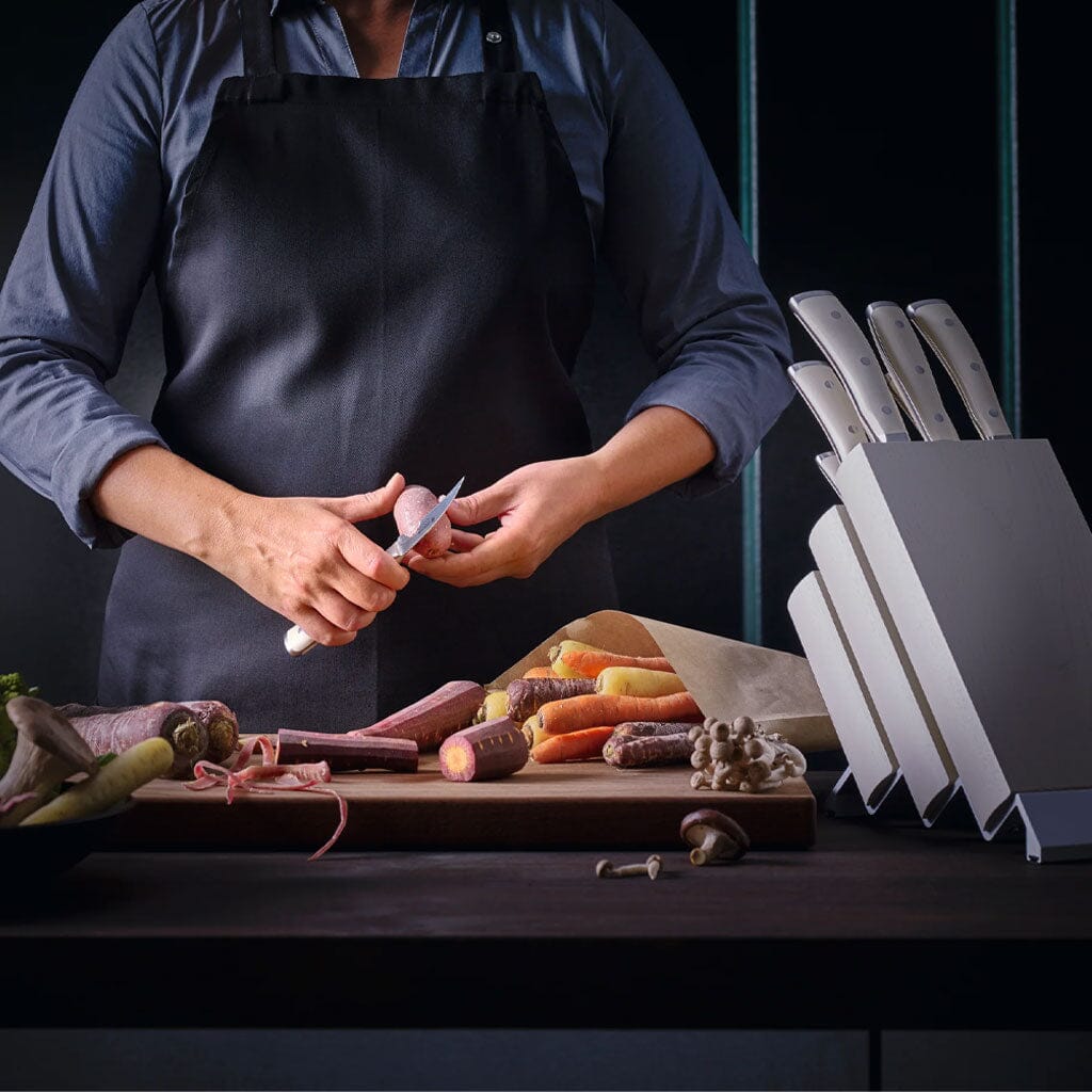 La serie Wüsthof Classic Ikon es conocida por su equilibrio perfecto entre elegancia y funcionalidad. El mango ergonómico sintético de color crema está firmemente remachado para un agarre óptimo. El medio cabezal reduce el peso, facilita el afilado y, al mismo tiempo, proporciona un control seguro y cómodo al cortar. Forjado en Solingen, Alemania, este cuchillo para pan es un testimonio de artesanía y precisión .