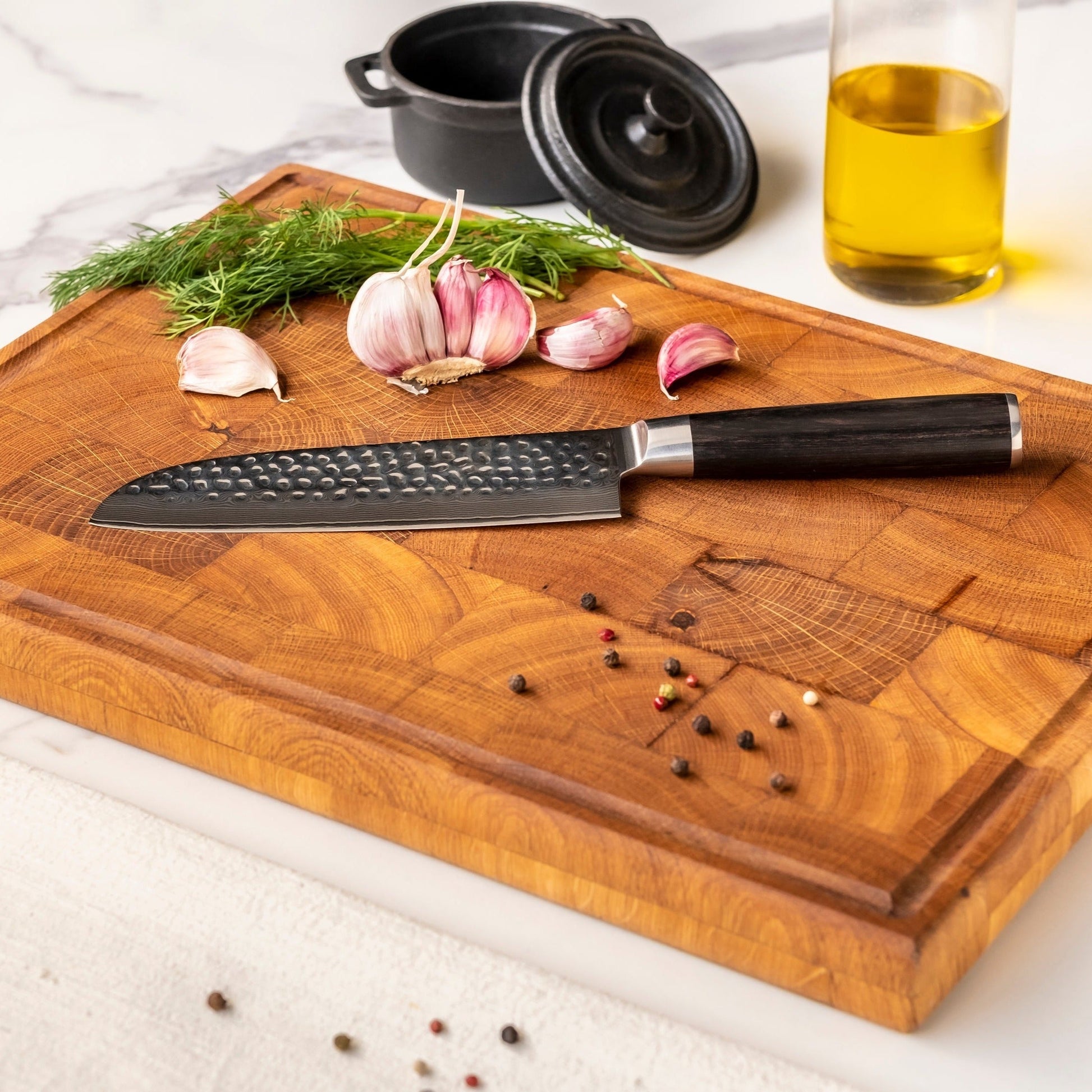 Esta edición de la serie BR Hammered Damask se ha terminado con precisión. La hoja de acero de damasco martillada a mano se extiende hasta un hermoso mango de madera de pakka. La hoja está martillada a mano al estilo japonés. Esta técnica se llama tsuchime. Esto no sólo garantiza un alto filo y una apariencia hermosa, sino que también evita que los productos cortados se peguen a la hoja.