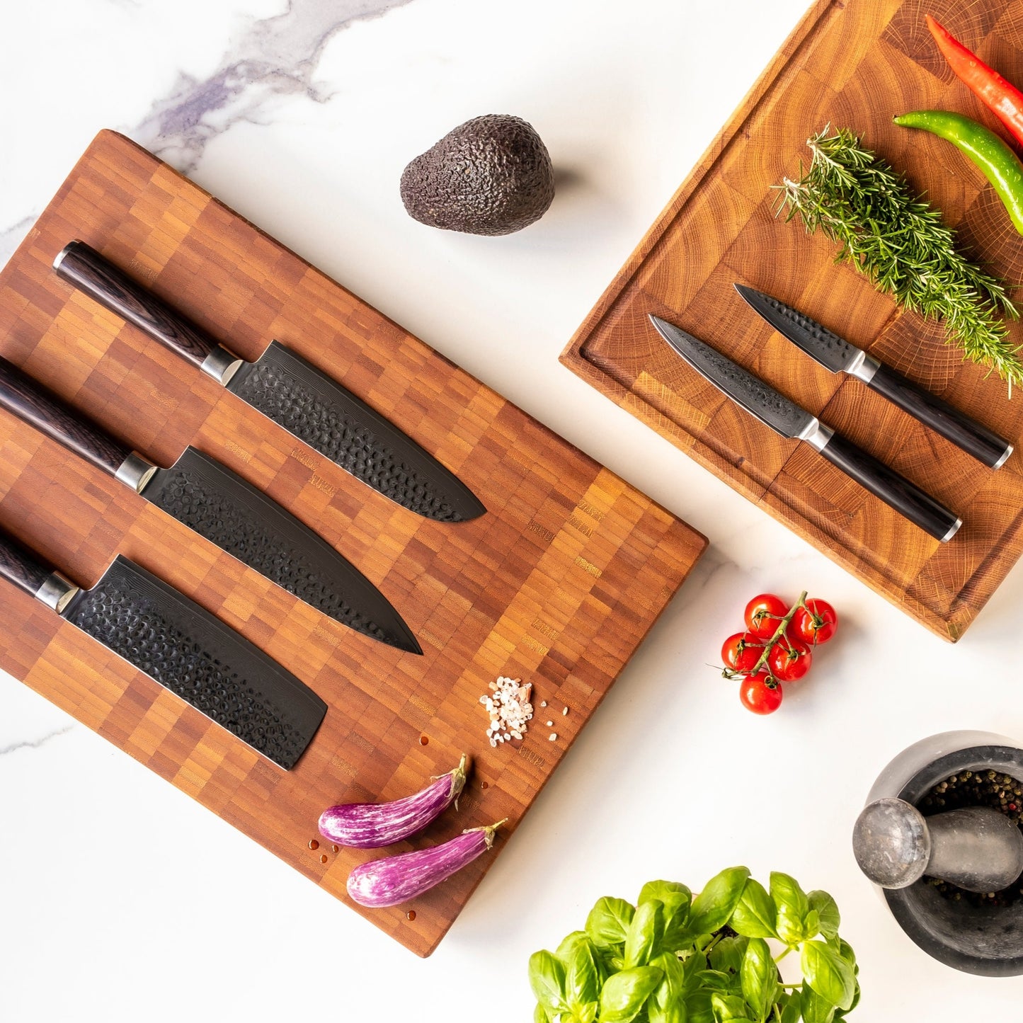 Esta oferta combinada contiene un juego de cuchillos de 5 piezas de la serie Hammered Damast BR + un bloque de cuchillos magnético. Esta combinación atraerá todas las miradas en la cocina y garantizará que sus nuevos cuchillos favoritos se guarden con estilo.