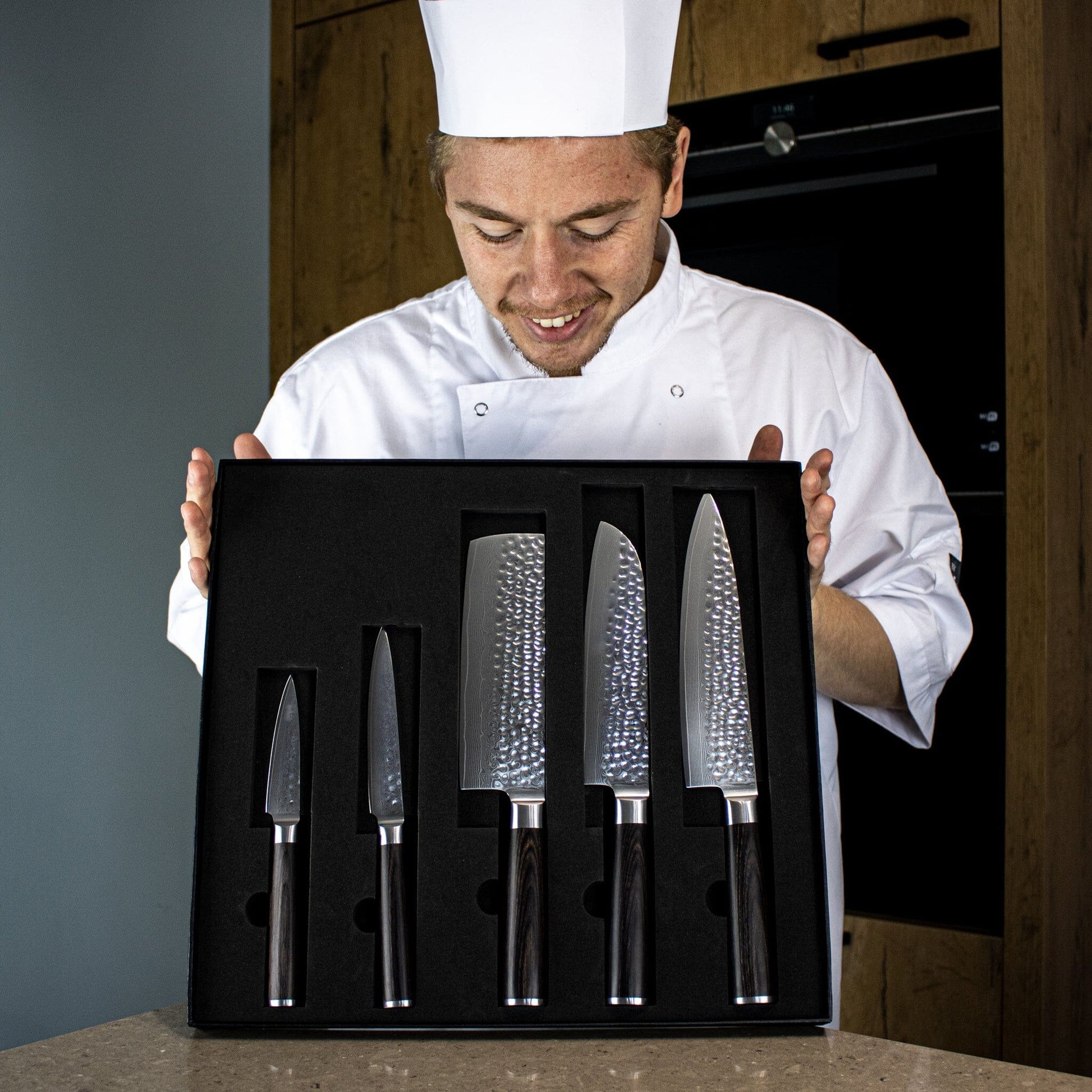 Los cuchillos siempre se entregan en una bonita caja de regalo. Esto no sólo garantiza que los cuchillos estén protegidos en el camino, sino que también le hará sonreír cuando lo reciba.