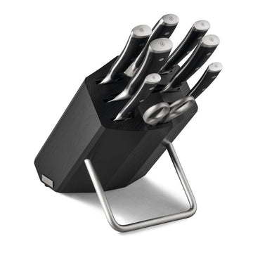 El elegante bloque de cuchillos negro completa este juego. Un verdadero punto de atracción en una cocina moderna o industrial.